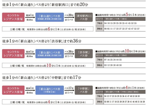 物件目の前のバス停からの利便性 公式 セントラルレジデンス笹塚 笹塚駅から新宿駅へ1駅4分 住友不動産