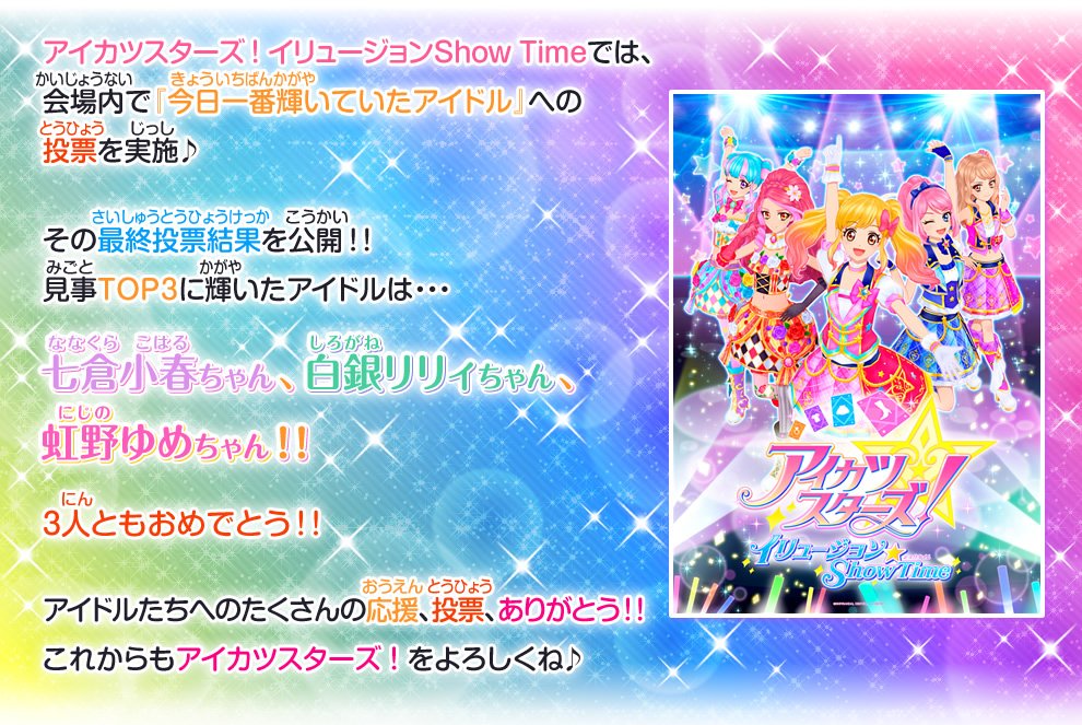 アイカツスターズ イリュージョンshow Time 会場内投票 集計速報 イベント 大会 データカードダス アイカツスターズ