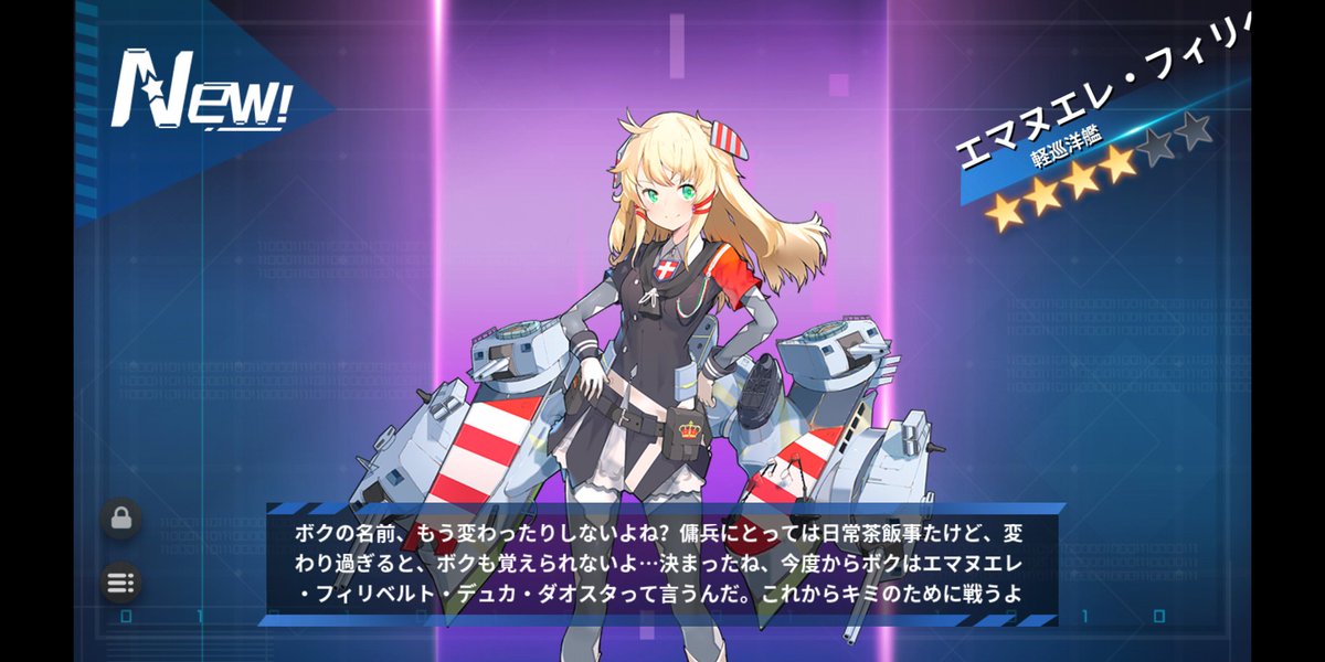 戦艦少女r公式 決まったね 今度からボクはエマヌエレ フィリベルト デュカ ダオスタって言うんだ これからキミのために戦うよ アンミラーリオ エマヌエレ フィリベルト デュカ ダオスタ エマヌエレ フィリベルト デュカ ダオスタ級軽