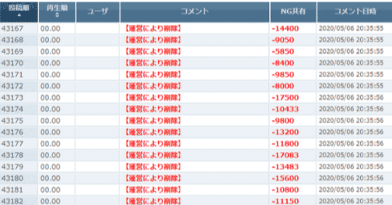 ニコニコ コメント 運営により削除